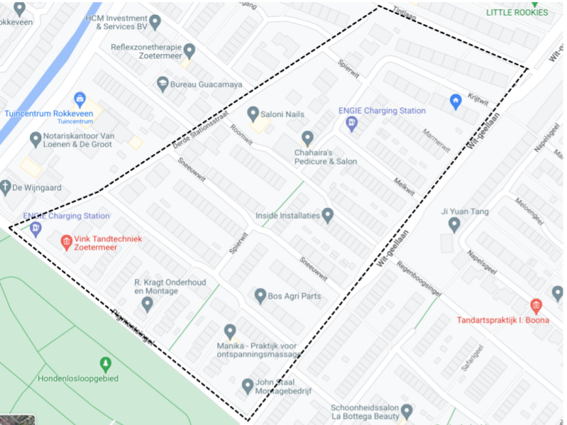 Op de kaart is het blok aangeduid waar binnen gevraagd is of mensen mee willen doen.